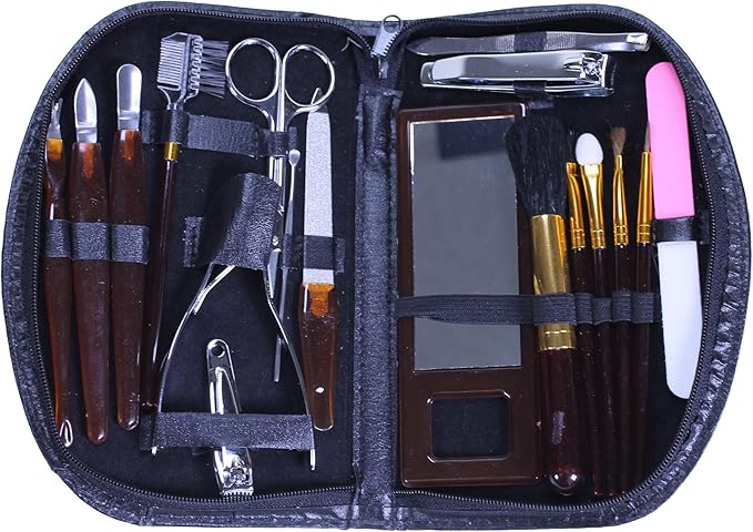 18-delni set za manikuro ponuja obsežen nabor visokokakovostnih pripomočkov za nego, ki nudijo vse, kar potrebujete za profesionalno nego nohtov v elegantnem in prenosnem dizajnu.