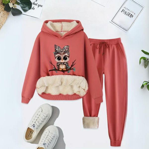 Komplet s potiskom sovice: topla trenirka z dolgimi rokavi in hlače za jesen in zimo.